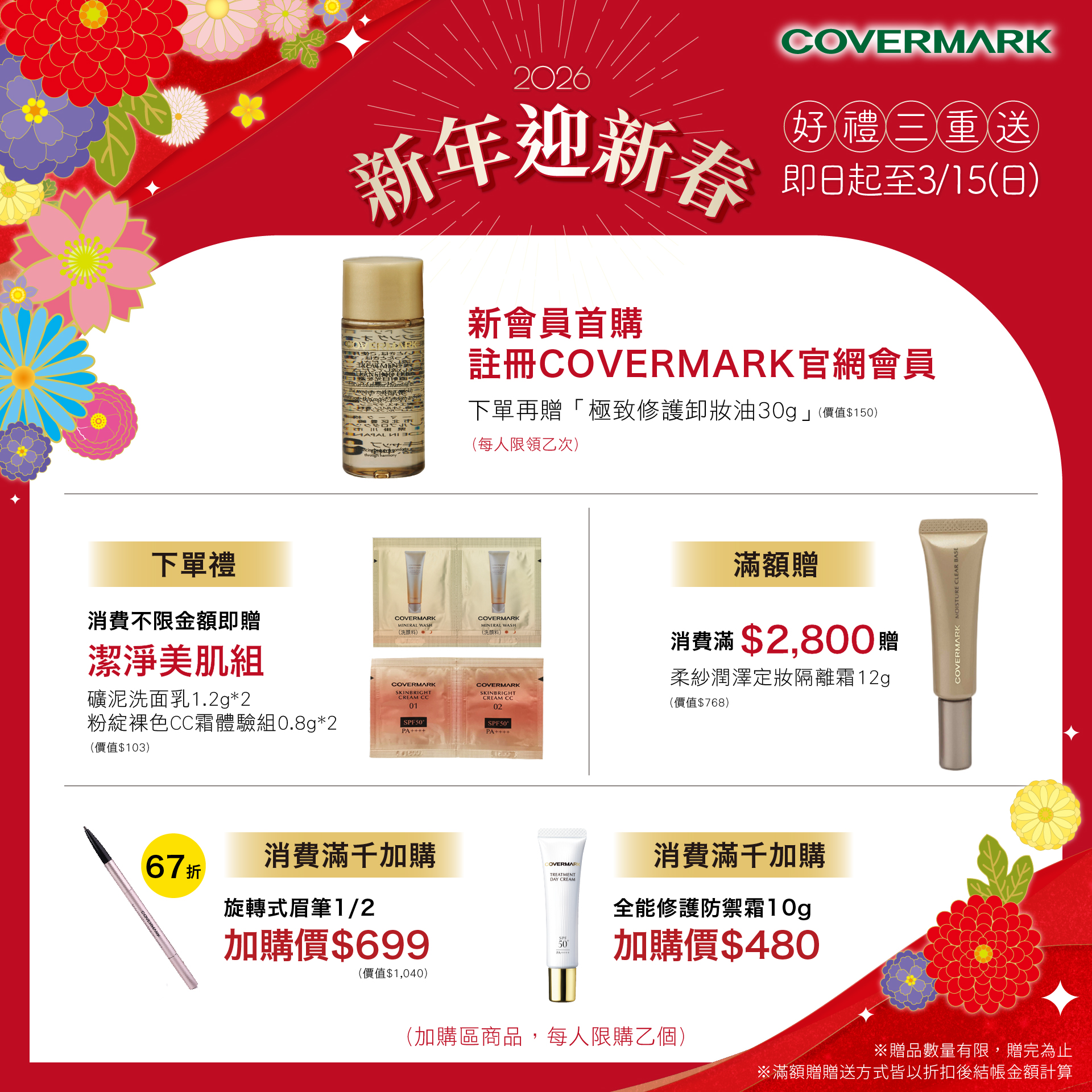 1/1(六) - 3/15(日) 好禮三重送